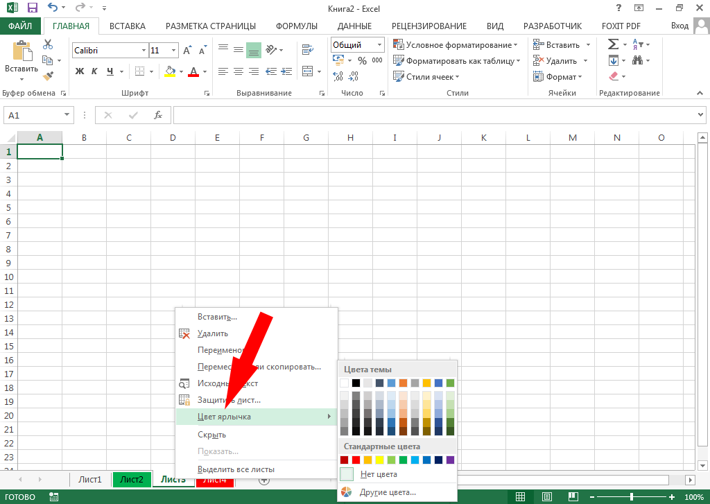 Вкладки с названиями листов можно сделать цветными. Для этого установите курсор на вкладку и выберите в контекстном меню пункт "Цвет ярлычка".