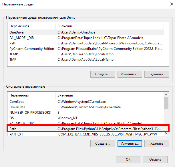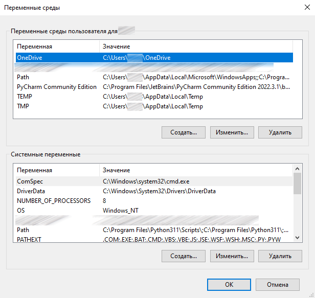 Операционная система Windows 10 позволяет просмотреть переменные среды пользователя и системные переменные.