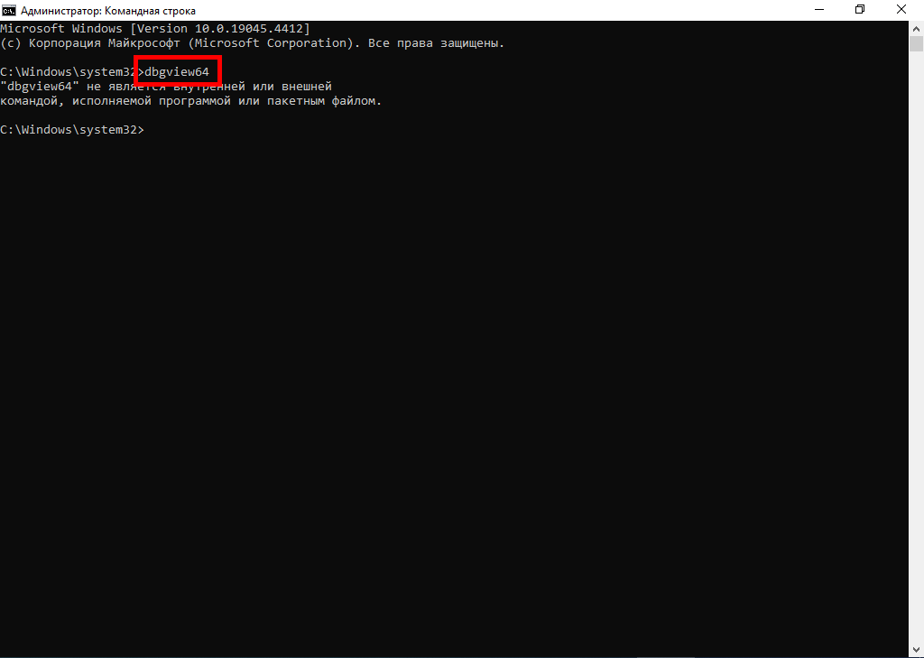 Теперь при вводе той же команды dbgview64 операционная система будет знать, что нужный файл необходимо искать и в папке C:\test, после чего будет запущена программа dbgview64.exe из этой папки.