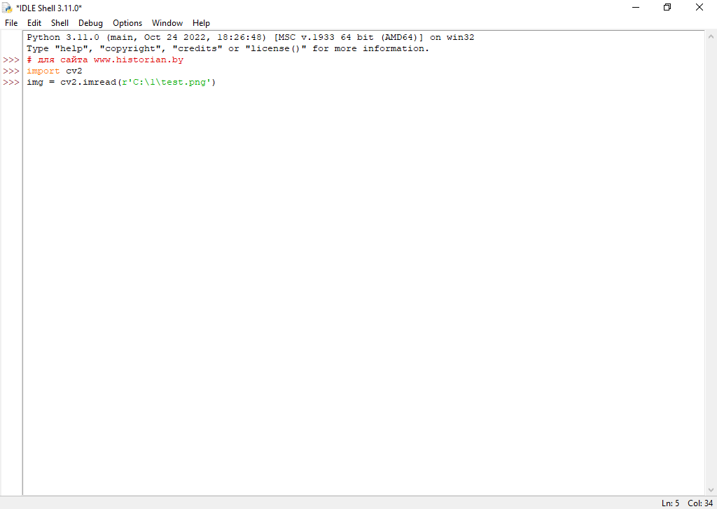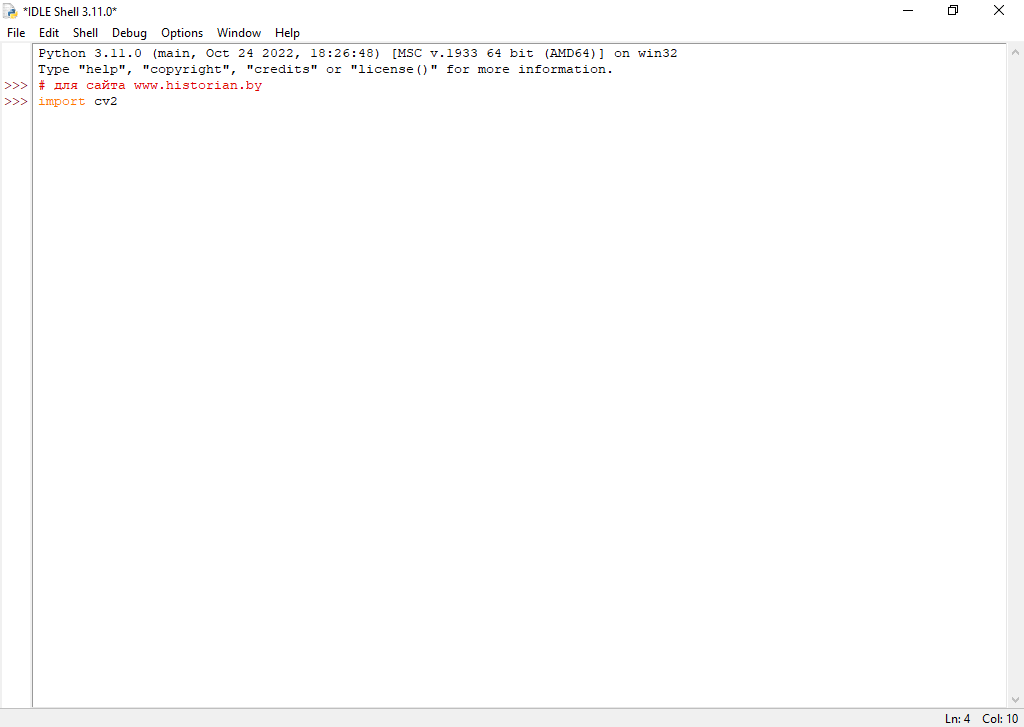 В зависимости от того, где набирается код (в среде Python IDLE или в каком-нибудь стороннем редакторе кода) количество строчек кода будет немного отличаться. Если код набирается в консоли Python IDLE, тогда необходимо выполнить следующие шаги: