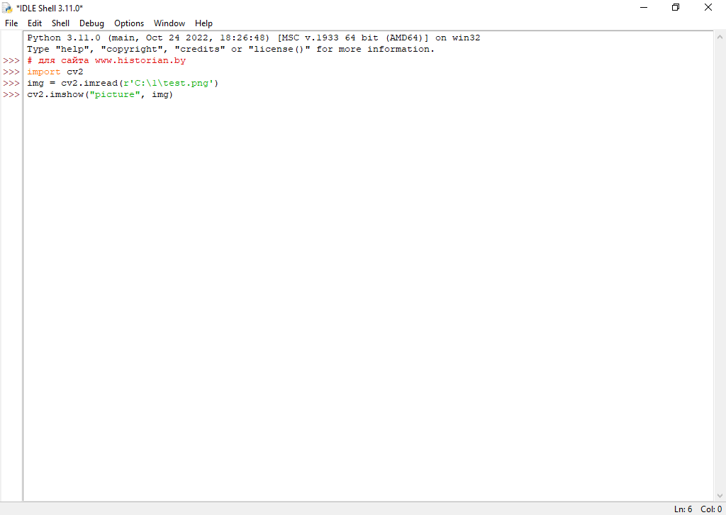 cv2.waitKey(0)Полностью код будет выглядеть следующим образом: