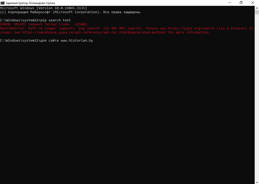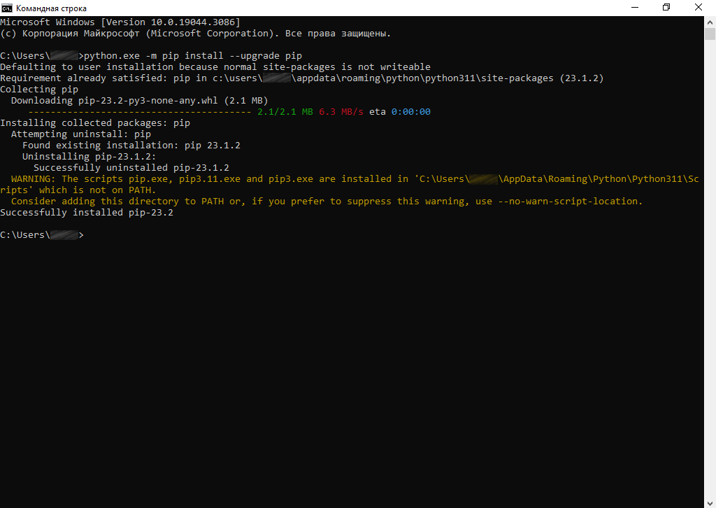 Для проверки установленной версии pip наберите в командной строке следующую команду.