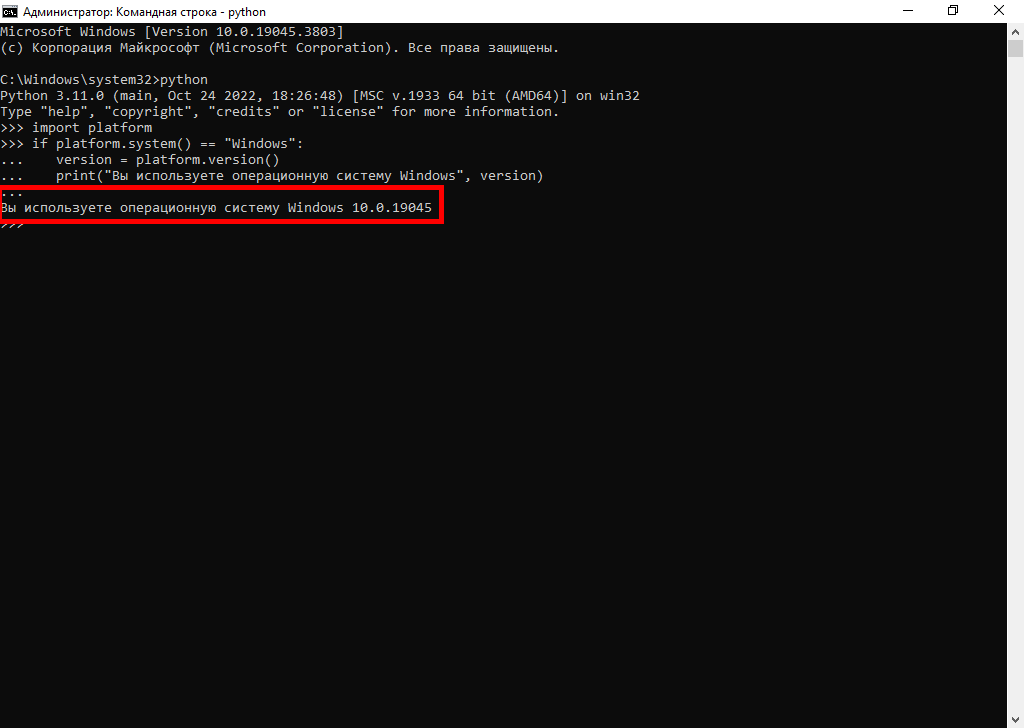 print("Вы используете операционную систему Windows", version)Результат выполнения кода - версия операционной системы Windows.