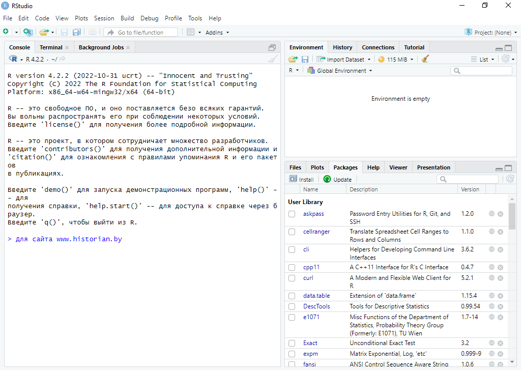 Сразу после установки языка программирования R вы можете начинать работать через консоль R, но гораздо удобнее использовать для работы интегрированные среды разработки: