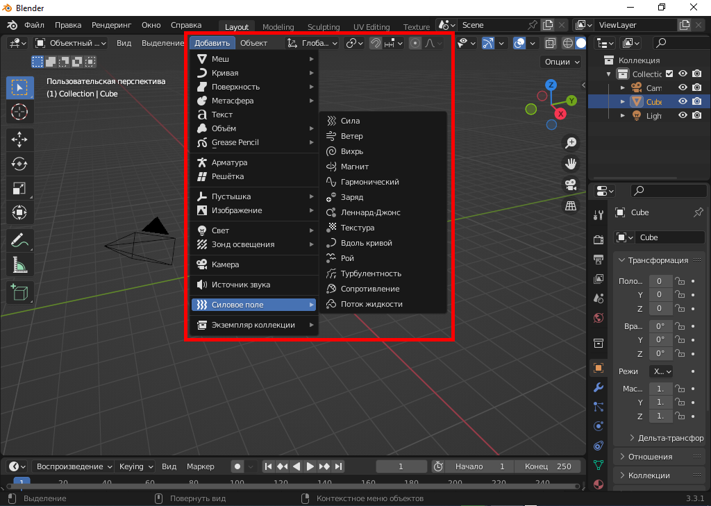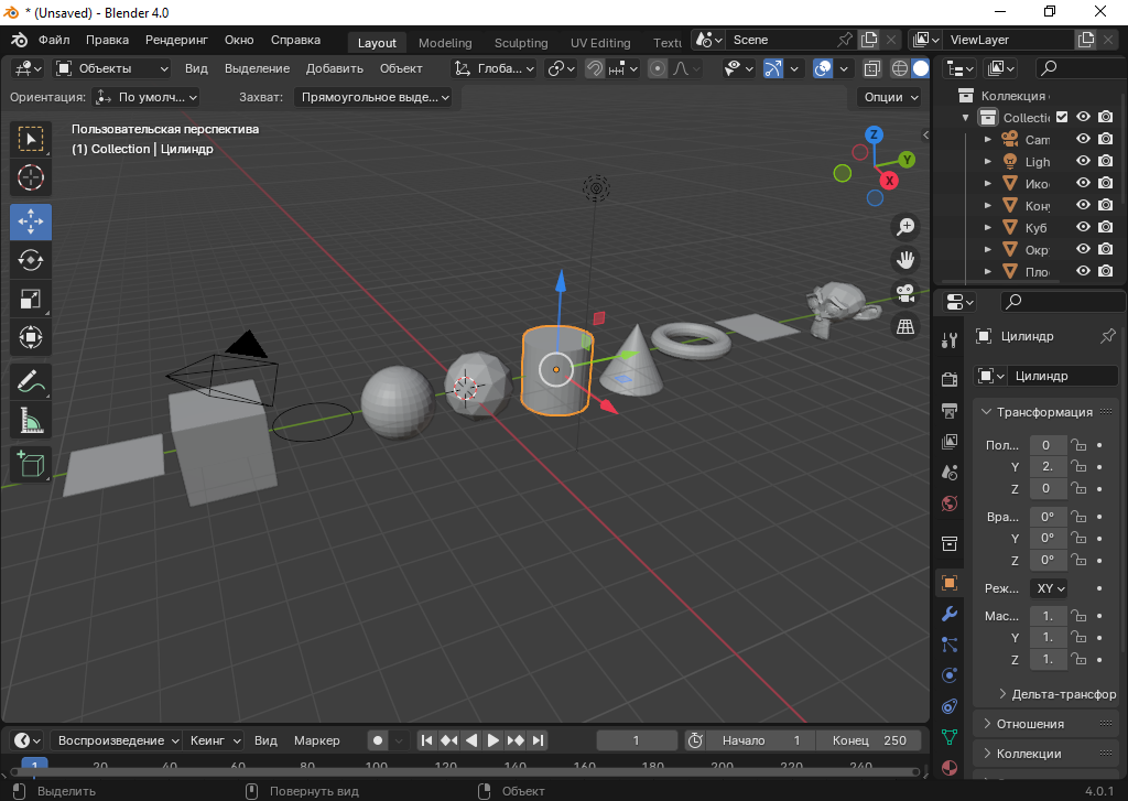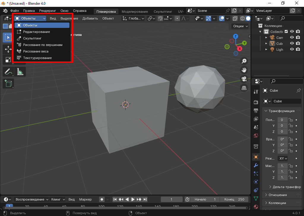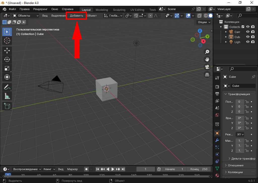 Добавление объектов в Blender 4.0 зависит от используемого режима (объектный режим или режим редактирования).