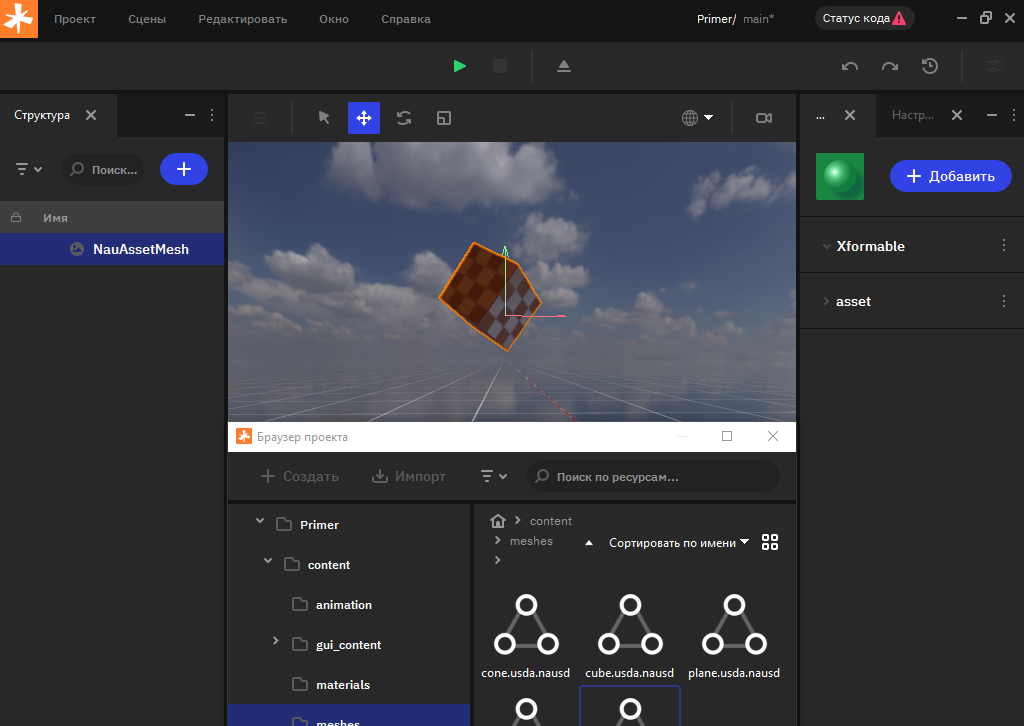 В Nau Engine игровая логика реализуется с помощью скриптовых компонентов, написанных на языке программирования C++. Также поддерживается анимация через импорт контейнера USD.