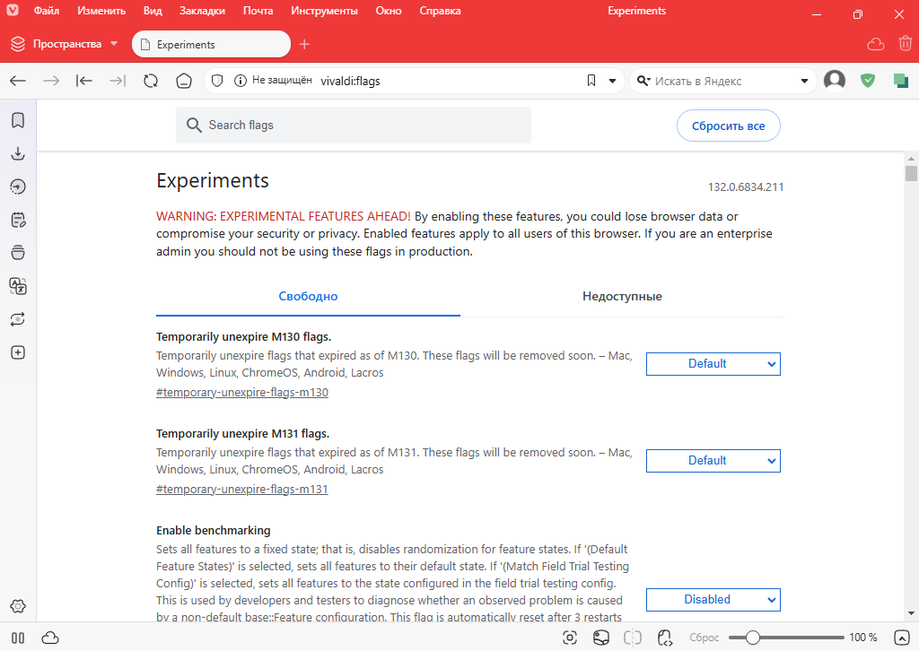 Для включения экспериментальных функций наберите в адресной строке браузера "vivaldi:flags" (без кавычек).