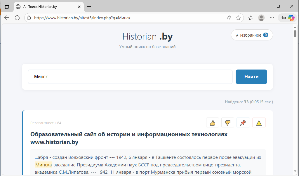 На сайте www.historian.by представлена информационная система, содержащая большой объём информации - 1285 статей. Аналогичное по объёму книжное издание занимало бы более 500 страниц текста.