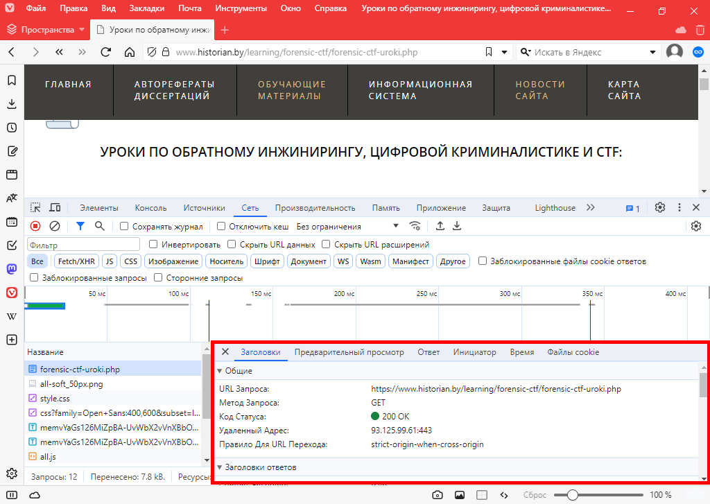 С помощью инструментов разработчика браузера можно просмотреть заголовки HTTP/HTTPS.