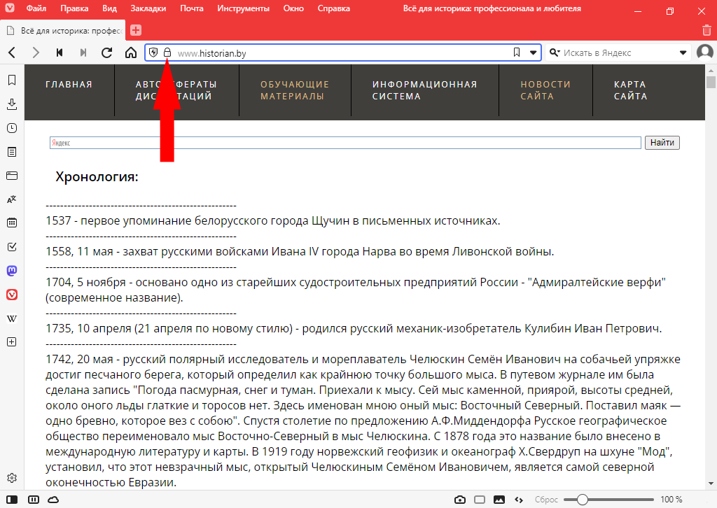 При подключении к сайту по протоколу HTTPS в адресной строке браузера отображается закрытый замок.