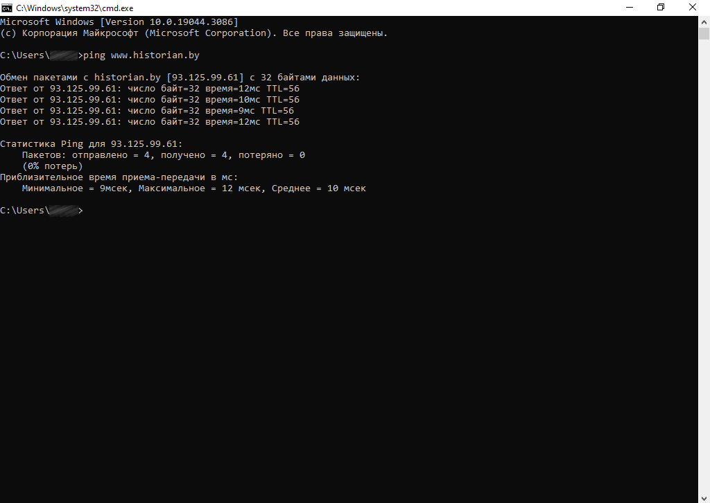 Определение доступности хоста с помощью команды ping в командной строке Windows 10