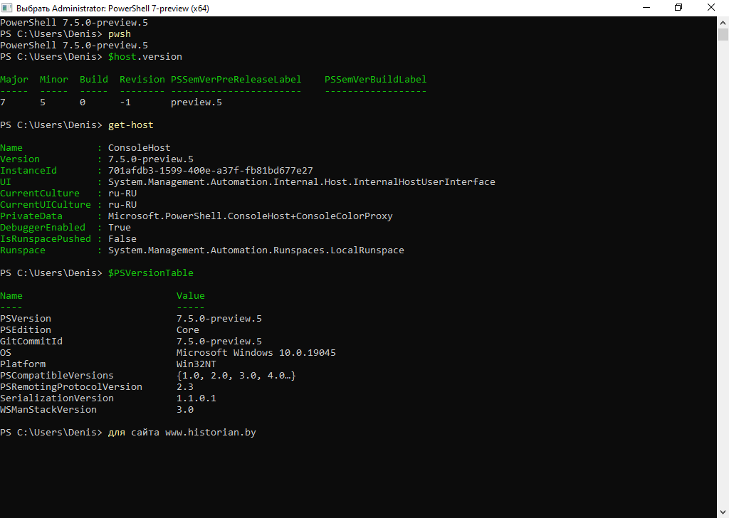 Знакомство с PowerShell 7.5.0 в Windows 10