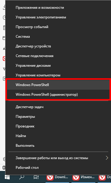 Для запуска PowerShell щёлкните правой кнопкой мышки на кнопке "Пуск" и в контекстном меню выберите пункт "Windows Powershell" или "Windows Powershell (администратор)".
