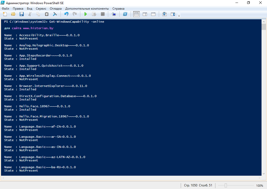 Командлет Get-WindowsCapability определяет поддержку следующих возможностей операционной системы Windows: