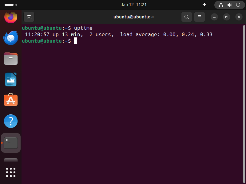 Получение информации о времени работы Ubuntu и количестве пользователей в системе