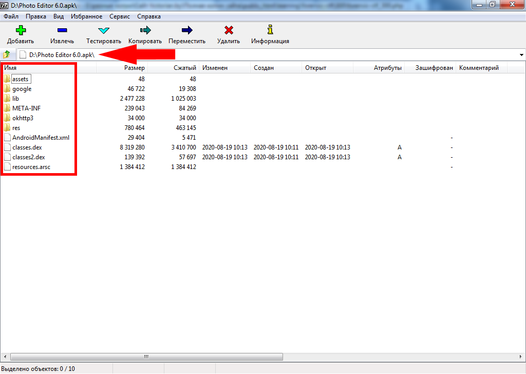 Содержимое apk-файла может быть просмотрено с помощью бесплатных программ Apktool или 7-Zip.