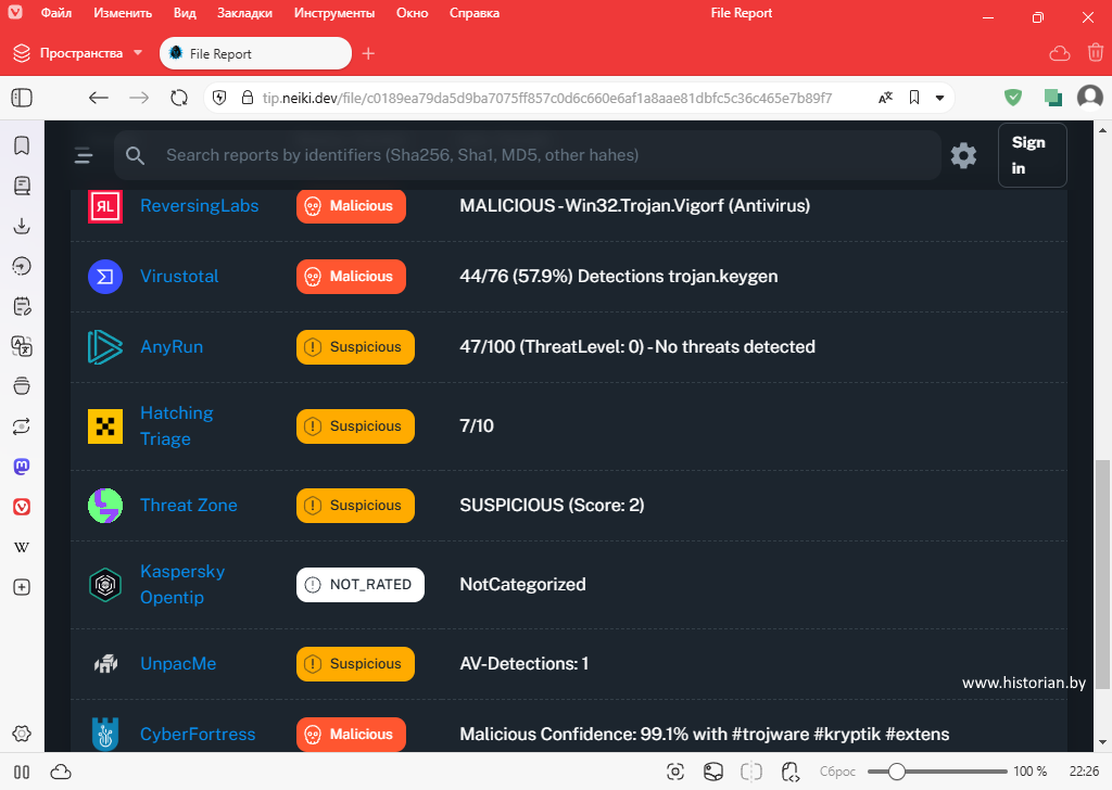 Изучение вредоносных файлов возможно как с помощью программ, так и специализированных сайтов. Загружаемые пользователями файлы запускаются в т.н. "песочнице" (операционная система, работающая на виртуальной машине). Все действия файлов (загрузка и скачивание других файлов, действия с файловой системой "песочницы", связь с удалёнными серверами и т.д.) тщательно записываются. На основании такого поведенческого анализа можно определить вредоносный характер файла. Самыми распространёнными сайтами такого рода являются: