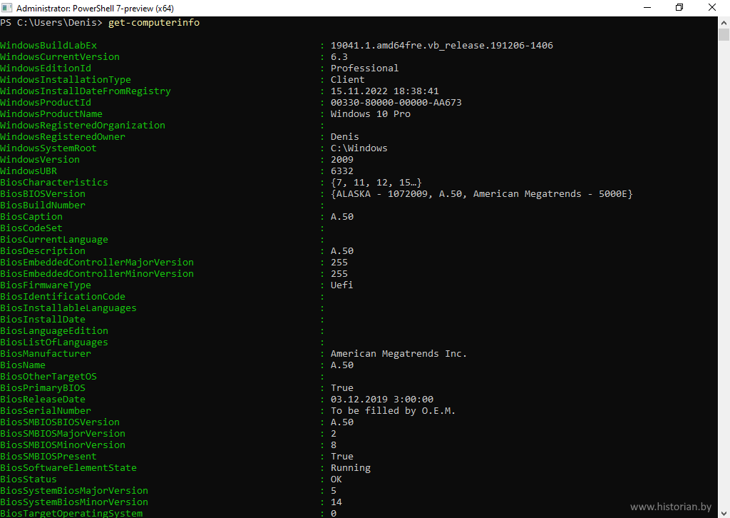 Командлет PowerShell Get-ComputerInfo. Справочник