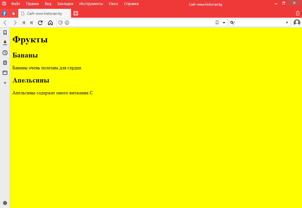 <H1>Фрукты</H1>