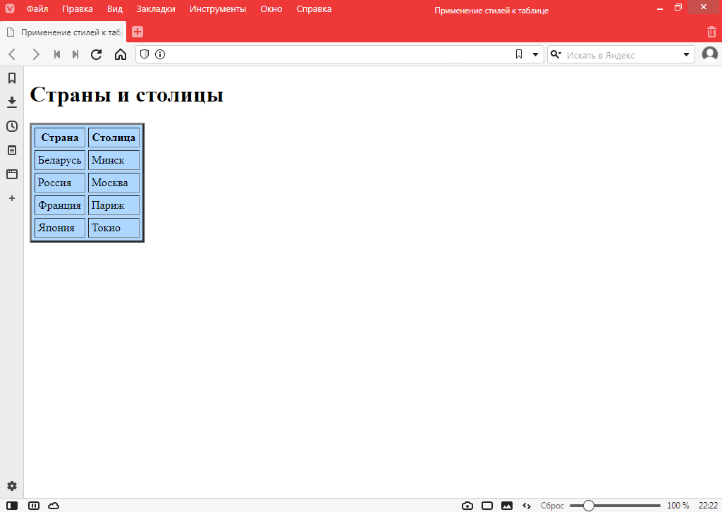 Урок №9. Применение стилей CSS к таблице