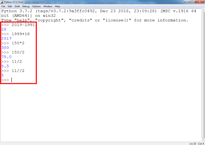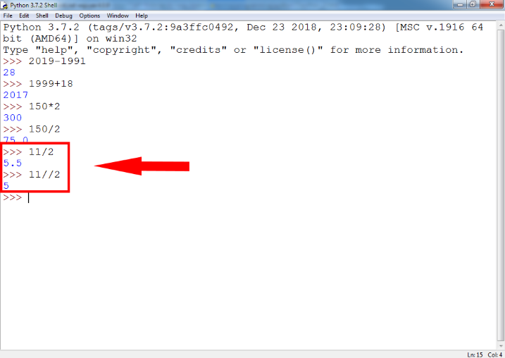 В результате операций сложения, вычитания, умножения и деления могут быть как целые числа (класс int), например, 1 или 7, так и числа с плавающей точкой (класс float) (2,37 или 0,78). Обратите внимание, что результат операции деления может быть принудительно приведён к целому числу (класс int) с помощью оператора / и к числу с правающей точкой (класс float) с помощью оператора //.