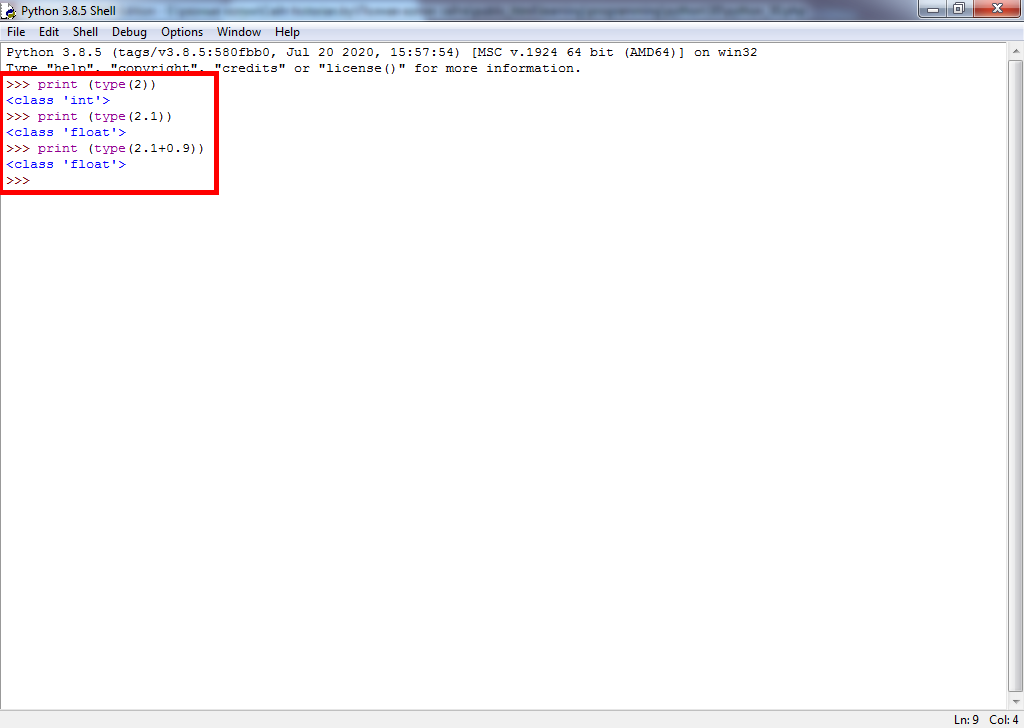 Python позволяет узнать класс целого числа и числа с плавающей точкой.