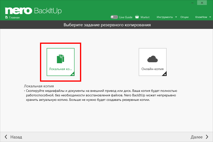 Создание локальной резервной копии в Nero BackItUp 2020 22.0