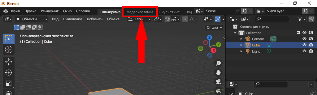 - перейти в режим моделирования, выбрав соответствующее рабочее пространство