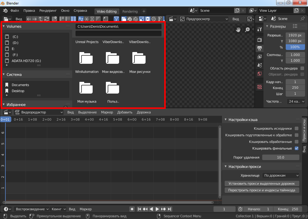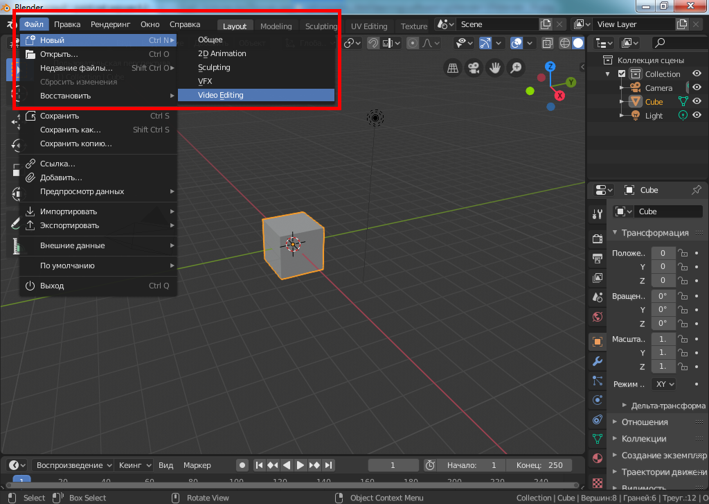 Редактирование видео в Blender 2.80