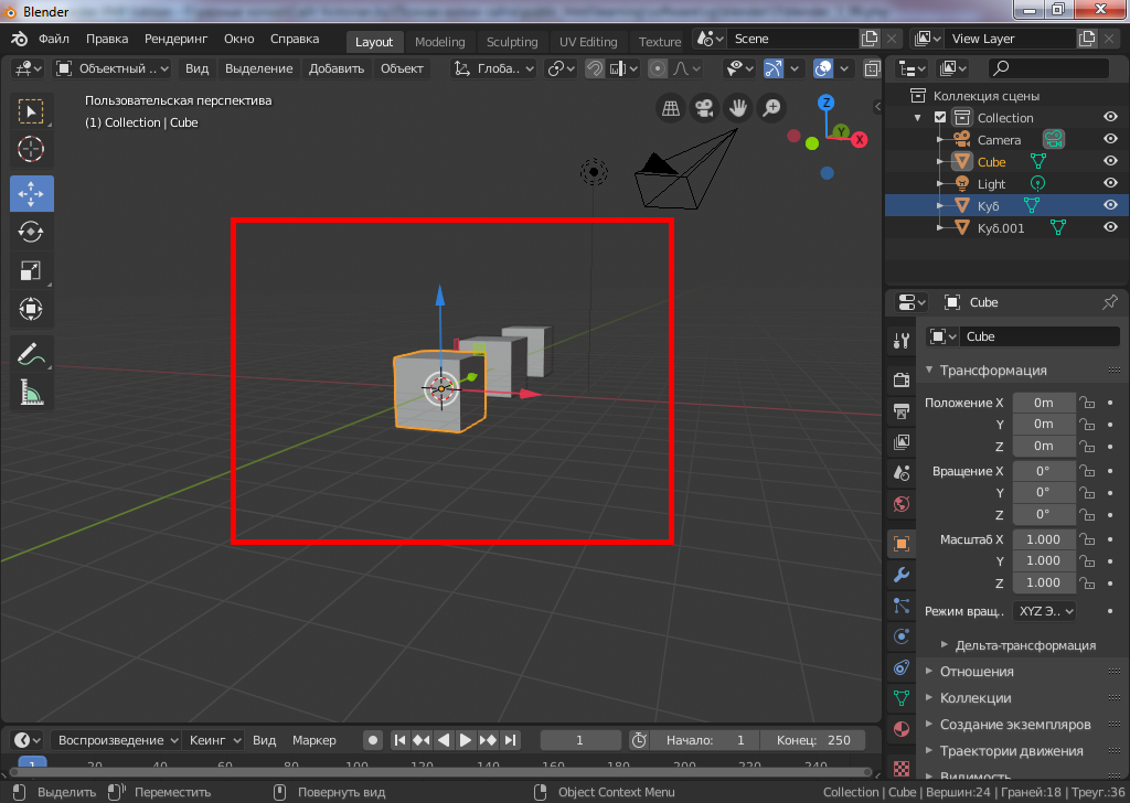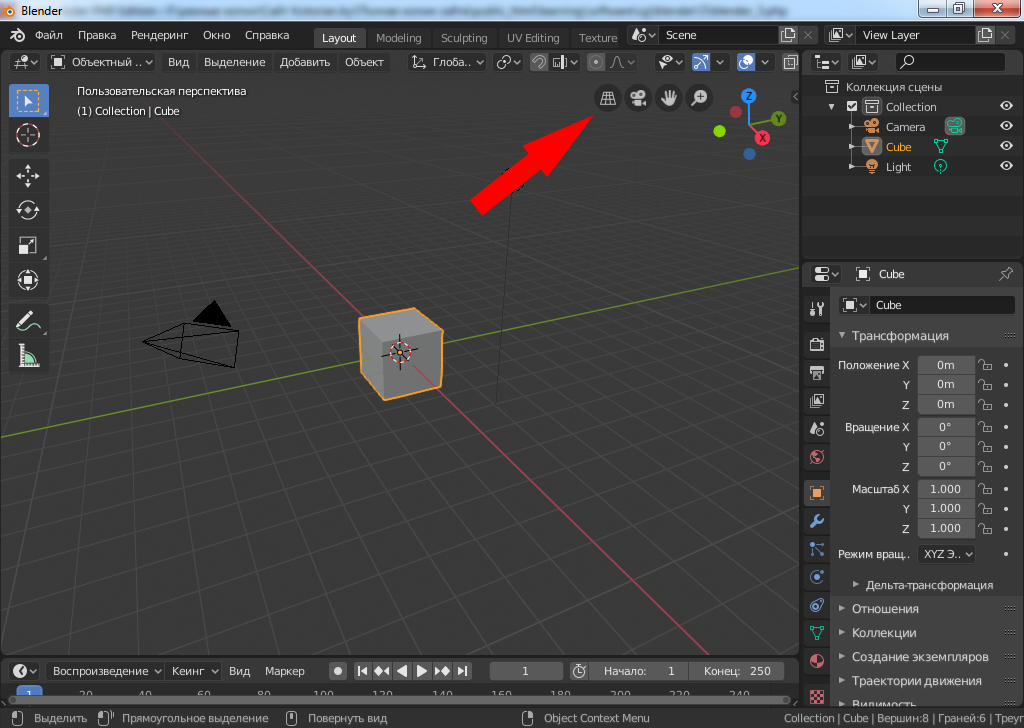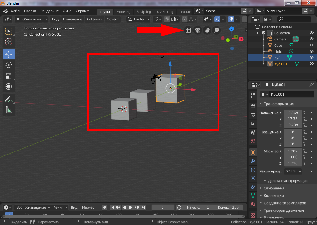 Перспективный и ортогональный вид в окне просмотра Blender