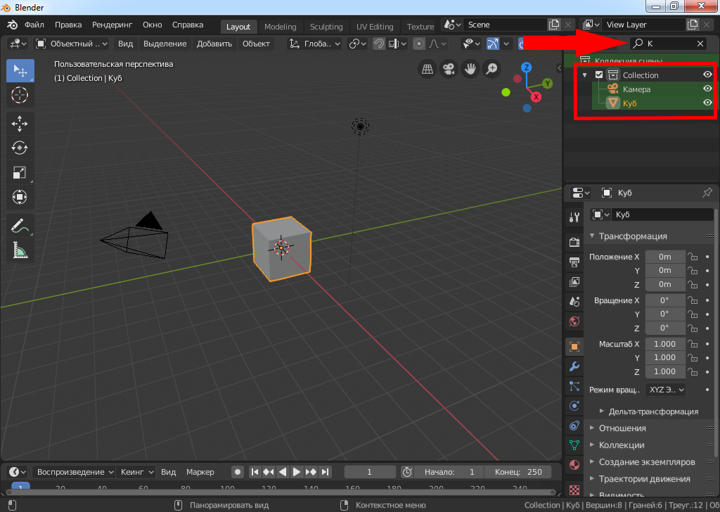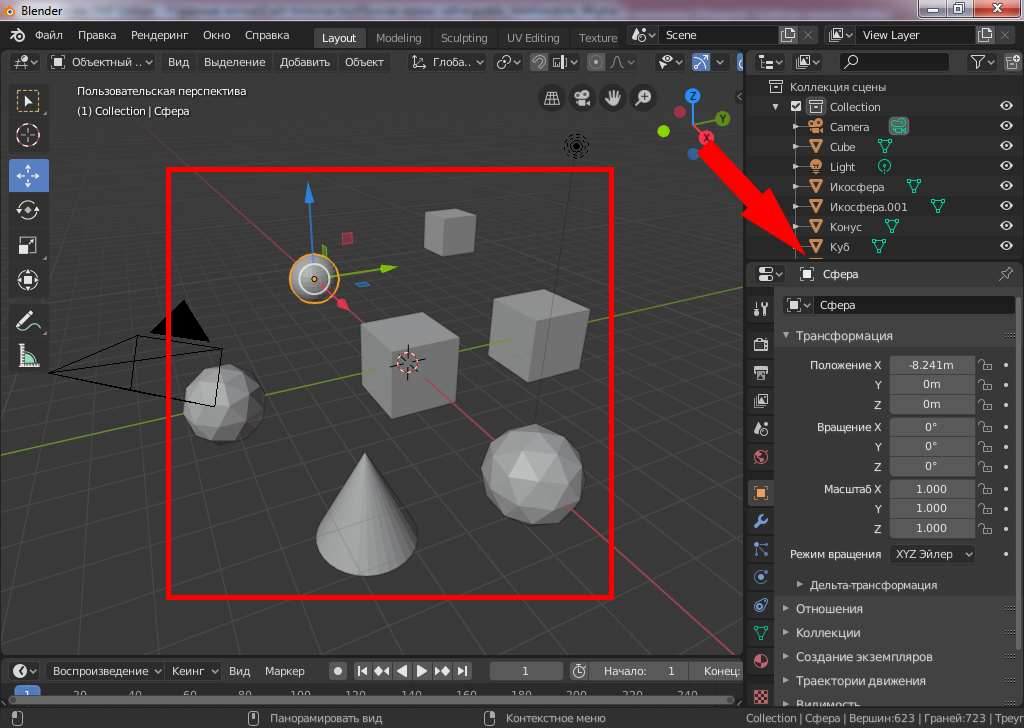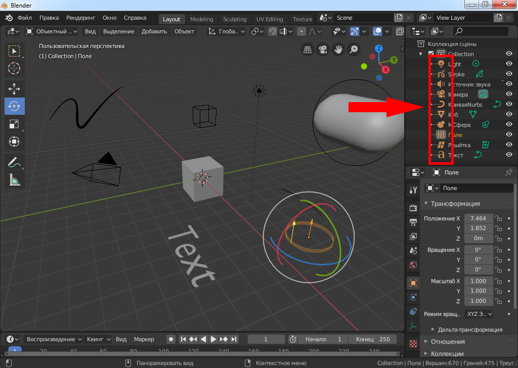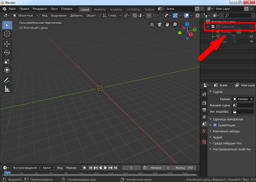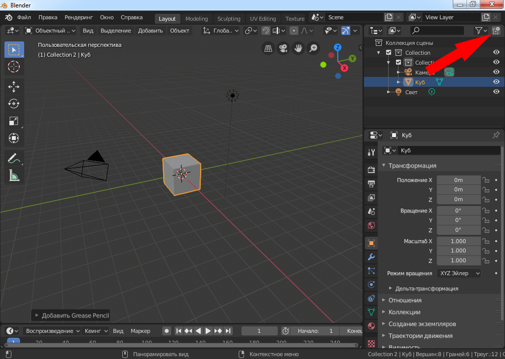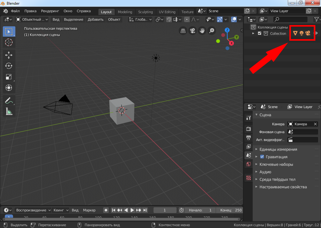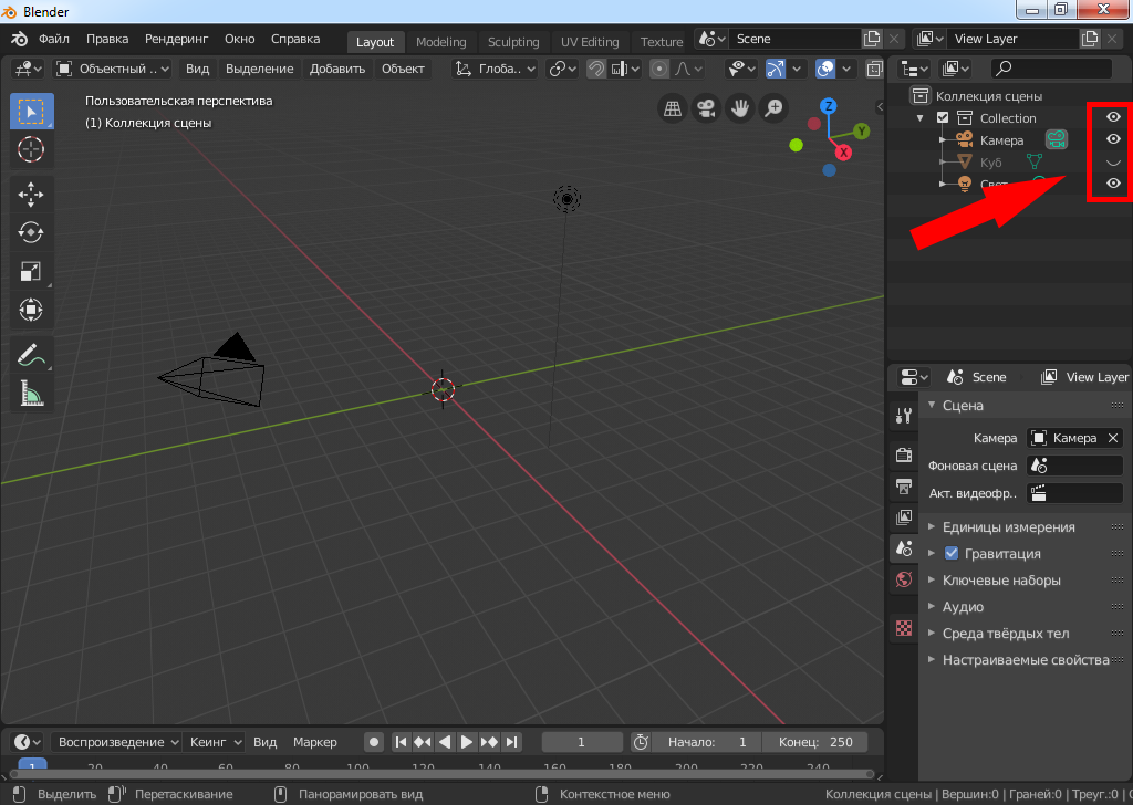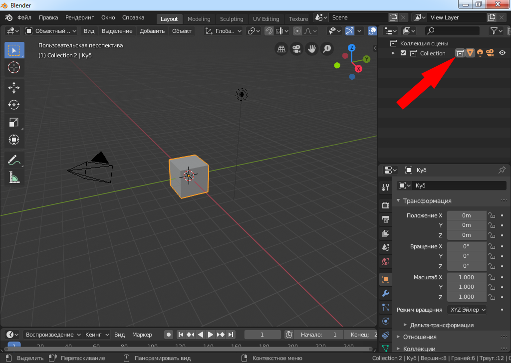 Если вы хотите скрыть все объекты какой-либо коллекции, нажмите на иконку с изображением глаза напротив названия коллекции.