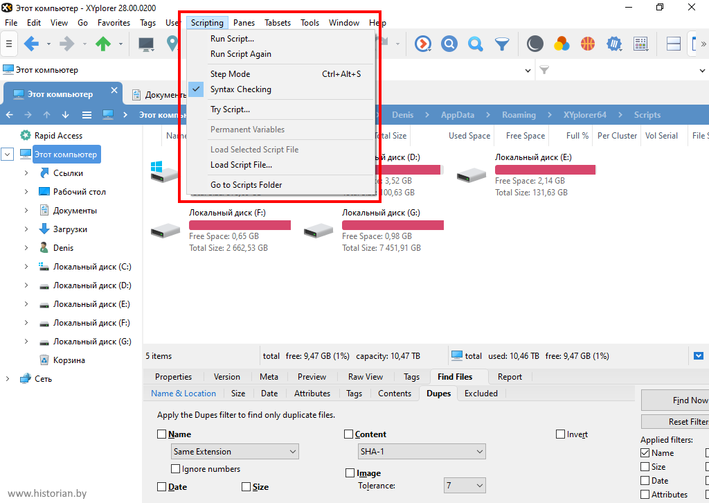Использование скриптов в файловом менеджере Xyplorer 28.00