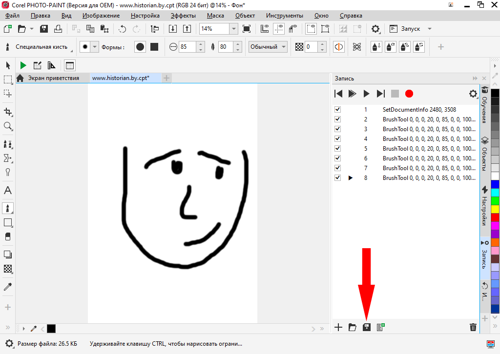 Запись действий в макрос CSC в Corel PHOTO-PAINT 2025 26.0