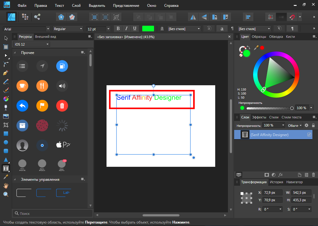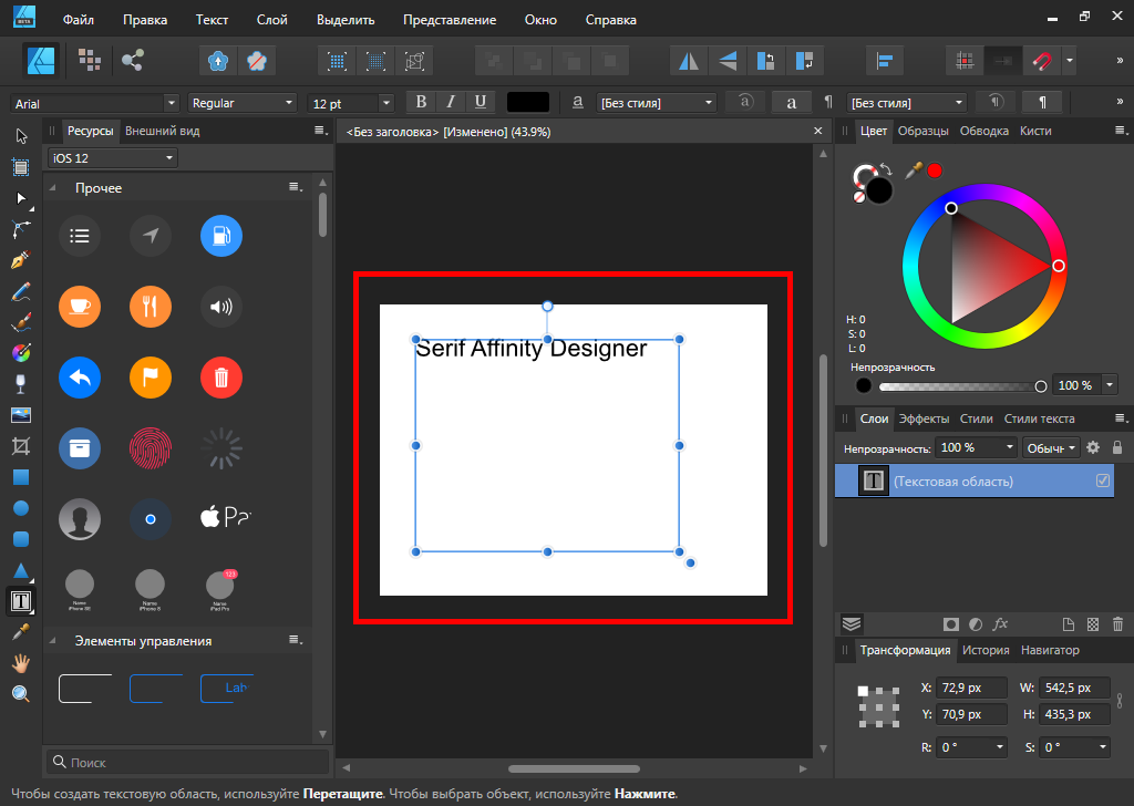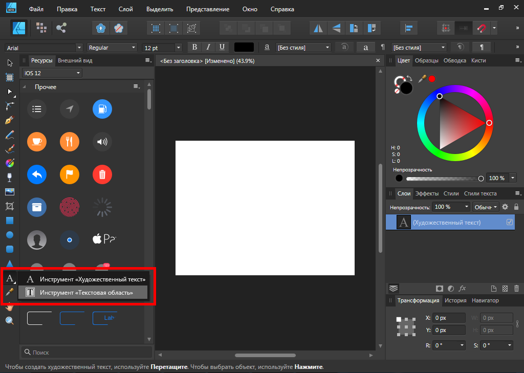 Добавление текста на изображение в Serif Affinity Designer 1.7.2
