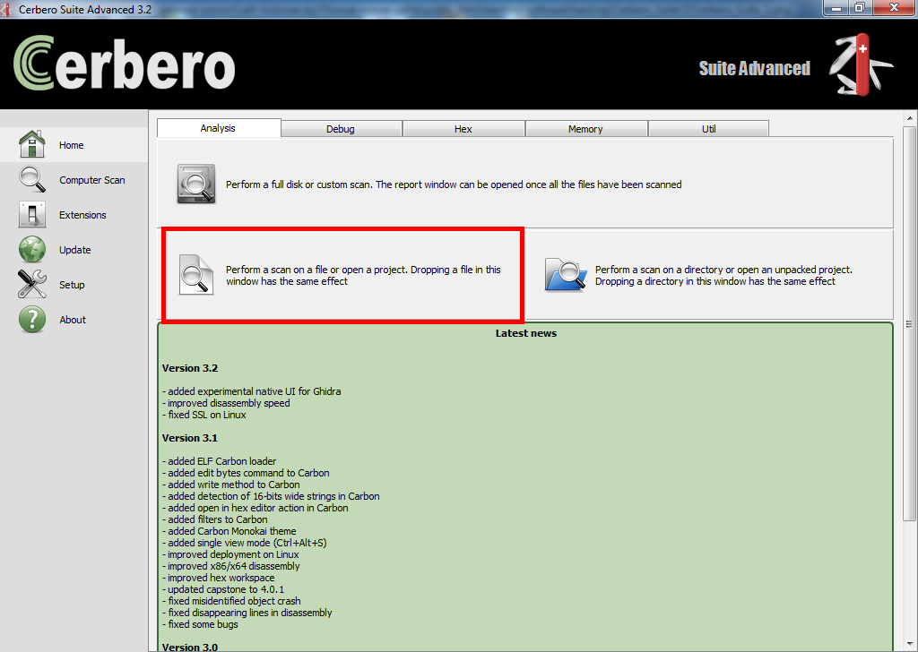 Урок №1. Дизассемблирование файла в Cerbero Suite Advanced 3.2.0