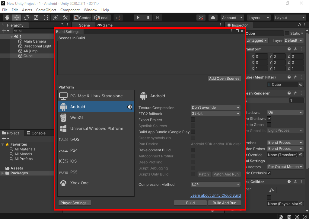 Создание Android-приложений в Unity 2020.2