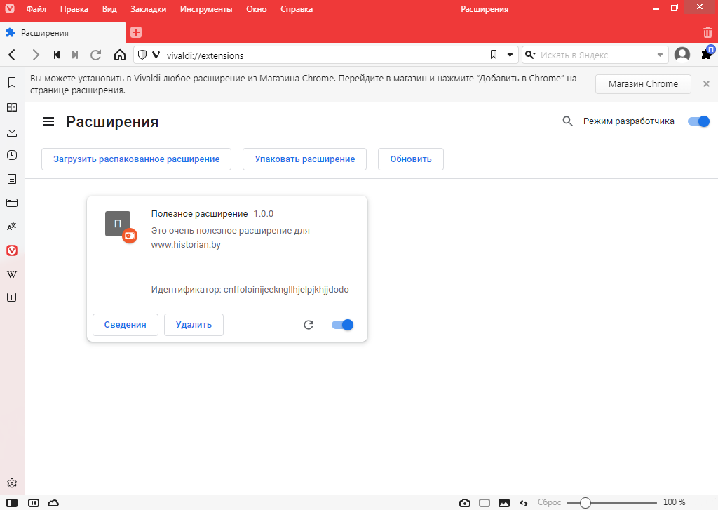 Расширения это небольшие программы, которые добавляют новые возможности в браузеры. Для просмотра установленных расширений наберите в адресной строке браузера "vivaldi://extensions" (без кавычек).