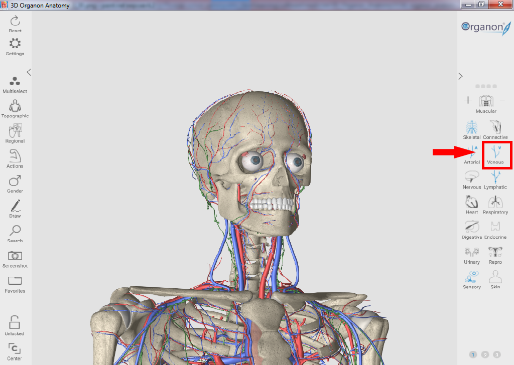 Для отображения венозной системы выберите на панели справа пункт "Venous".