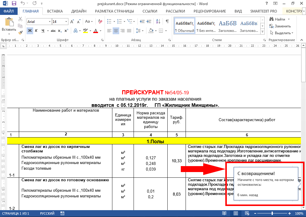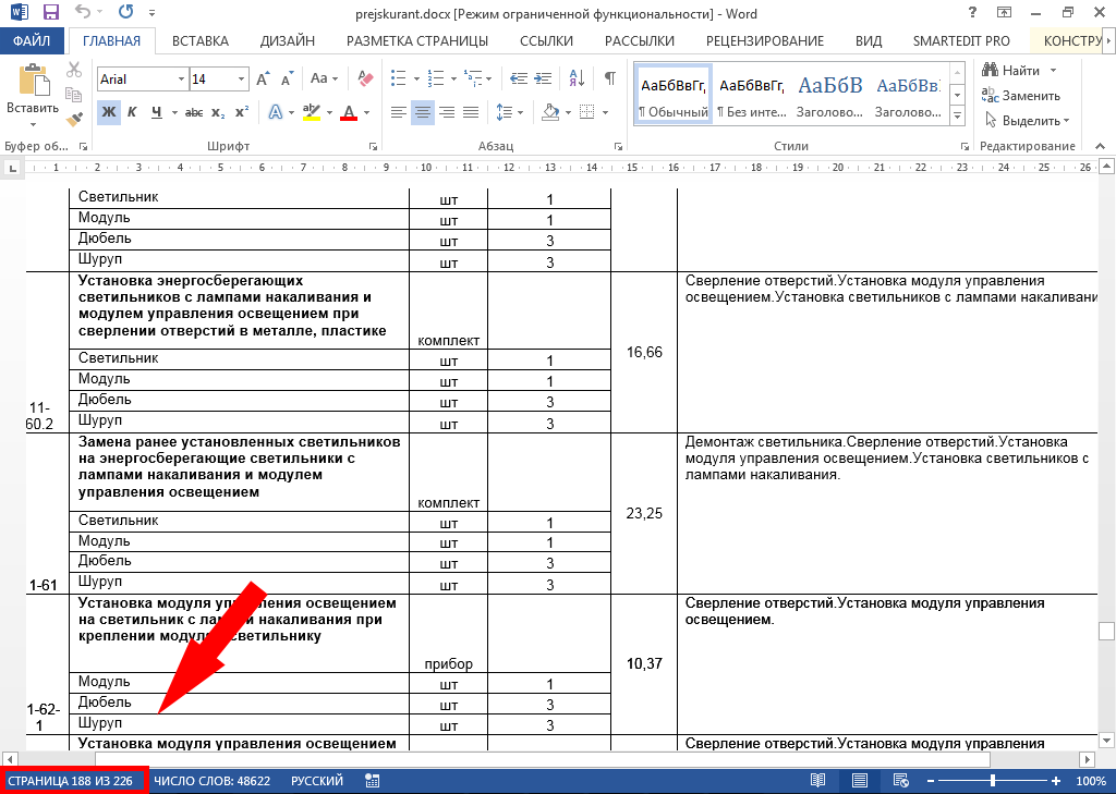 Microsoft Word 2013 умеет запоминать место последнего просмотра документа. В этом примере я открыл текстовый файл на 188 странице.
