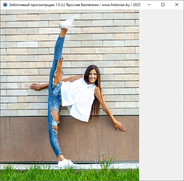 Бесплатная переносная (не требующая установки) программа "Заботливый просмотрщик 1.0" позволяет просматривать изображения. Пока это её единственная функция.